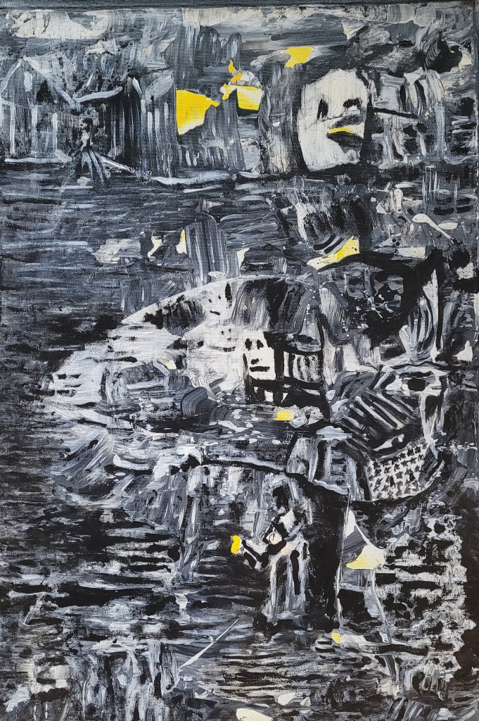 Today’s blog post features three artworks by Joan, who has lived in the Comox Valley for the past two years and finds creative practice to be a key part of mental health. For Joan, self-expression through art is valuable – but so is the way it connects us to others through a sense of recognition and mutual understanding. Joan writes, “To me altered states, hearing voices, visions… have much more purpose than a diagnostic label.”
